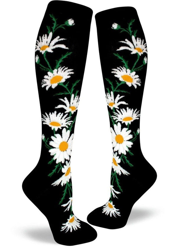 ModSocks Crazy For Daisies Women’s Knee Socks – Black 1 Pair Pack