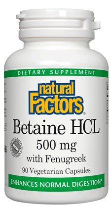 Natural Factors Betaine HCL 500mg With 100mg Fenugreek 90 Capsule